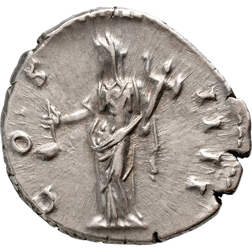 Reverse: COS IIII, veiled Vesta standing left, holding simpulum in right hand and palladium in left