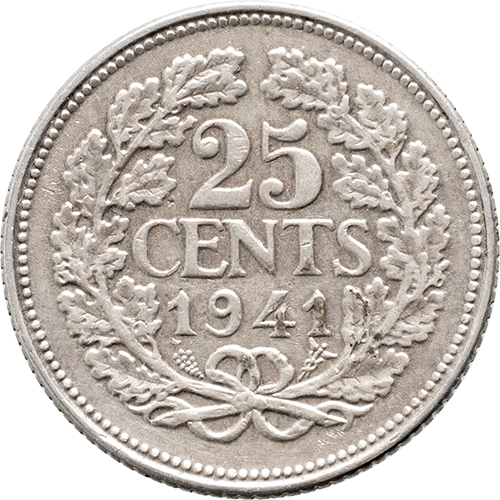 Keerzijde: 25 cents binnen twee samengebonden eikentakken