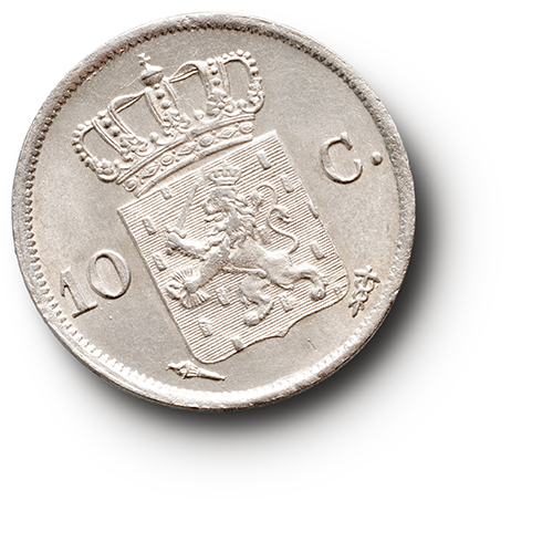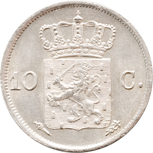 Keerzijde: gekroond Nederlands wapen tussen 10 – C.