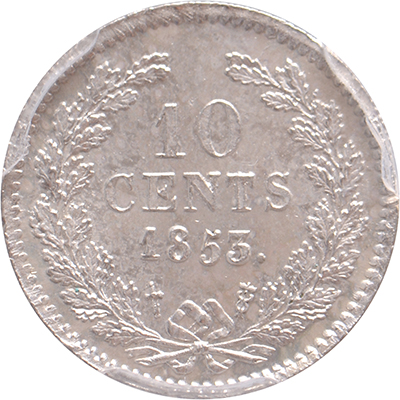 Keerzijde: 10 cents binnen twee samengebonden eikentakken