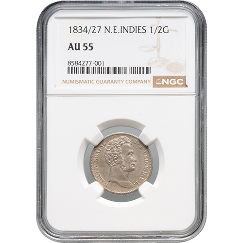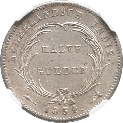 Keerzijde: HALVE / GULDEN binnen palmtakken