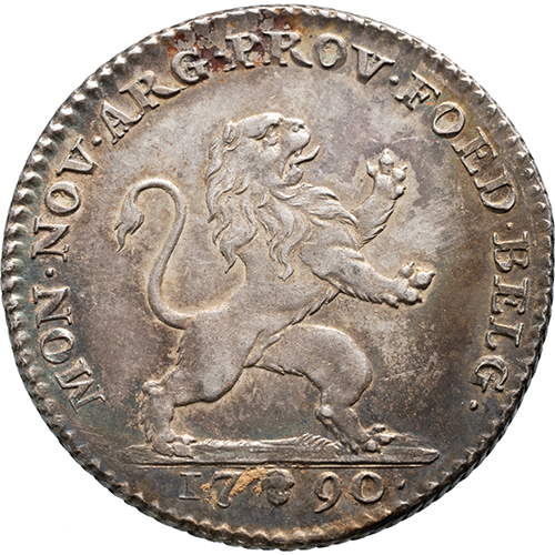 Voorzijde: MON. NOV. ARG. PROV. FOED. BELG. / 1790, klimmende leeuw naar rechts